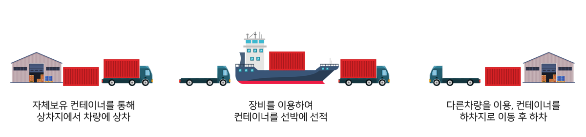 - 상차지항 : 정해진 항구로 이동하여 선박에 컨테이너를 적재합니다.